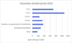 Kokonaisuudessaan LUMA-keskus Pohjanmaan vuosi 2025 oli hyvä ja tapahtumarikas vuosi. Saimme tehdä yhteistyötä useiden eri tahojen kanssa, syventää jo luotuja yhteistyökuvioita sekä luoda uusia mahdollisuuksia yhteistyölle. Ensimmäistä kertaa toiminnassamme oli vakituisemmin mukana myös kaksi opiskelijaa, josta saimme hyvää kokemusta tulevaisuuteen. Uutiskirjeiden ja sosiaalisen median kanavien kautta tietoa toiminnasta jaettiin yhteensä 1231:lle tilaajalle ja seuraajalle. Sivustomme ilmaisia, tilattavissa olevia materiaaleja tilattiin jopa 87 kertaa ja näiden kautta tavoitettiin 2251 lasta ja nuorta ympäri Suomea.